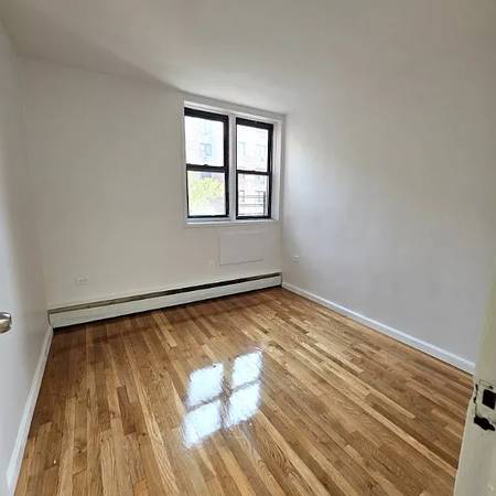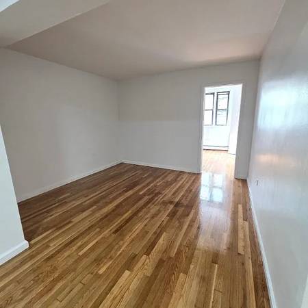 Fully renovated modern 3-bedroom apartment close to shopping and major transportation featuring a large living room with extra high ceilings, separate eat-in kitchen with large windows, spacious master bedroom with ample closet space and two windows, two additional large bedrooms, white-tiled bathroom, and two walk-in closets.