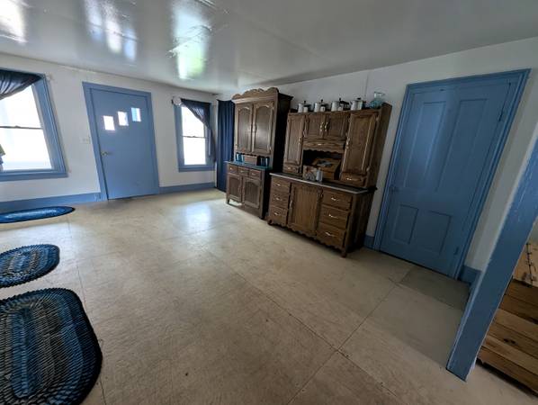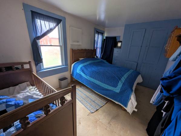 The two-story farmhouse includes a large bedroom on the main floor and three additional bedrooms upstairs.  A fctional addition on a poured concrete fodation currently serves as a washroom.  The spacious kitchen offers plenty of room to remodel and customize to your liking.  The home is heated with wood stoves, and electricity is available at the road, making this an ideal candidate for anyone looking to convert the property back to conventional utilities.