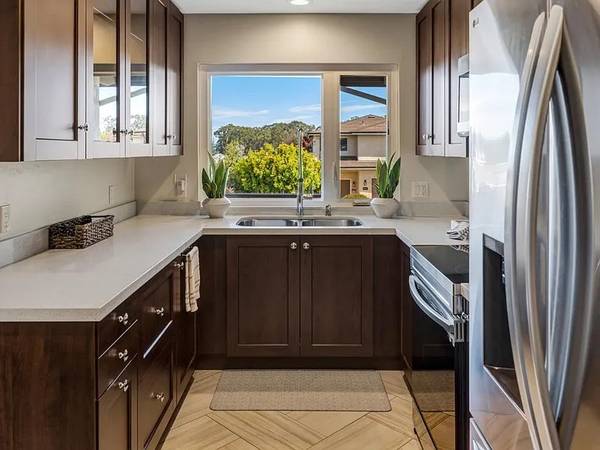 A panoramic Monterey Bay stretches in all directions, a vast expanse of foamy blue mingling with the powdered sugar sands of our area’s pristine beaches to define that distinctive, rug edge of the Monterey Peninsula. Behold all this through massive windows in the living room of this gorgeous upgraded, single-level home in the Del Monte Heights neighborhood of Seaside. At night, as constellations emerge overhead in the black velvet sky, city lights sparkle across the bay, letting you follow with your eyes from Cannery Row all the way to Lovers Point jutting out defiantly into the ethereal darkness. Every reason to adore the Monterey Peninsula is another reason why you’ll love living here, minutes from beaches, scenic state parks, and fine restaurants to suit any palate. The flexible layout is open,