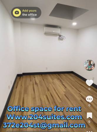 Private Modern office suite available for rent in Norwood, Bronx! Address is 372 East 204 Street, Bronx, NY 10467. Approx 180 sq ft. Close to 205th St (D) subway. Rent includes electricity and internet. All businesses welcome.