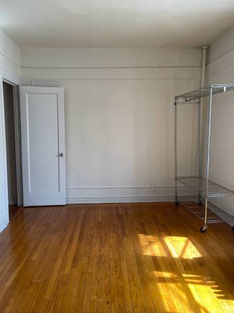The bedroom for rent is 10′ 7″ by 16′ 8.5″, or 176 sq ft. It has a sizeable closet. The room is offered furnished. The bedroom’s exposure is east.
