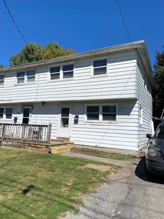 South Utica Rental. 1/2 of a side-by-side duplex. This apartment features 3 Bedrooms (15×13, 12×11 & 9×9) and a full bathroom (6×5) upstairs. There is an eat-in kitchen (15×10) that is completely remodeled, Living Room (15×13.50) and a half bath (7×4) on the mid level and there’s a full basement with ladry hookups. Hardwood floors throughout, kitchen and baths are Ceramic Tile, Insulated replacement windows and a high-efficiency furnace. Rent includes water. All other utilities are tenant paid.. MILITARY VETERANS are strongly encoura to apply and receive preferential treatment. Pets are negotiable-fees may apply.