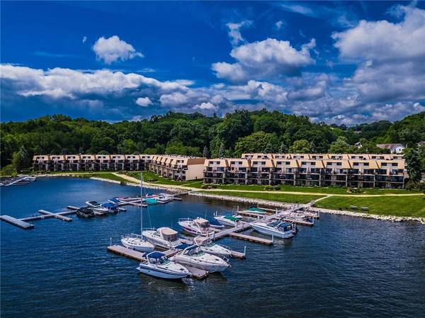 Beautiful townhouse with open floor plan, newly updated throughout with new granite cotertops in the kitchen, a large dinette area, and all 3 bathrooms. Modern décor, spacious 2 bedrooms, 2.5 baths. Enjoy your morning coffee on the balcony overlooking beautiful Irondequoit Bay. Contemporary black onyx fireplace, new stainless steel high-end appliances, and washer-dryer. Garage and front door parking. Large modern clubhouse swimming pool, reasonably priced boat docking available. Loads of summer and winter activity.The