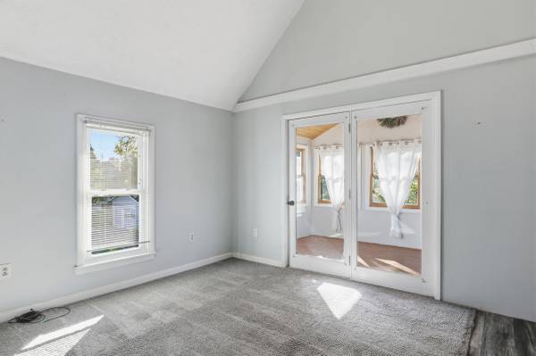 Upstairs 2 bed 1 bath apartment in a nice neighborhood. The kitchen features many solid wood cabinets, a 3 piece appliance set (microwave, oven, and fridge), and a lazy susan. First bedroom includes multiple windows for tons of slight and small closet. Second bedroom includes a closet and small in-wall bookshelf. Living room has tall ceilings, large window, fiber internet hookup, and bar top leading into kitchen. Bathroom contains toilet, sink, full tub/shower, shelving, and a stacked washer/dryer it (not pictured). This upstairs it also includes a sroom and separate balcony if you enjoy the calmness of the outdoors. Upstairs it will have access to on-street parking only.